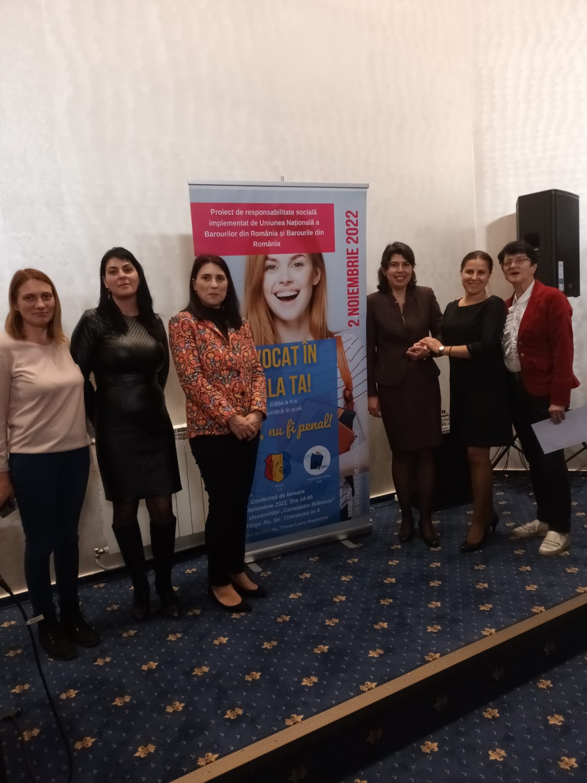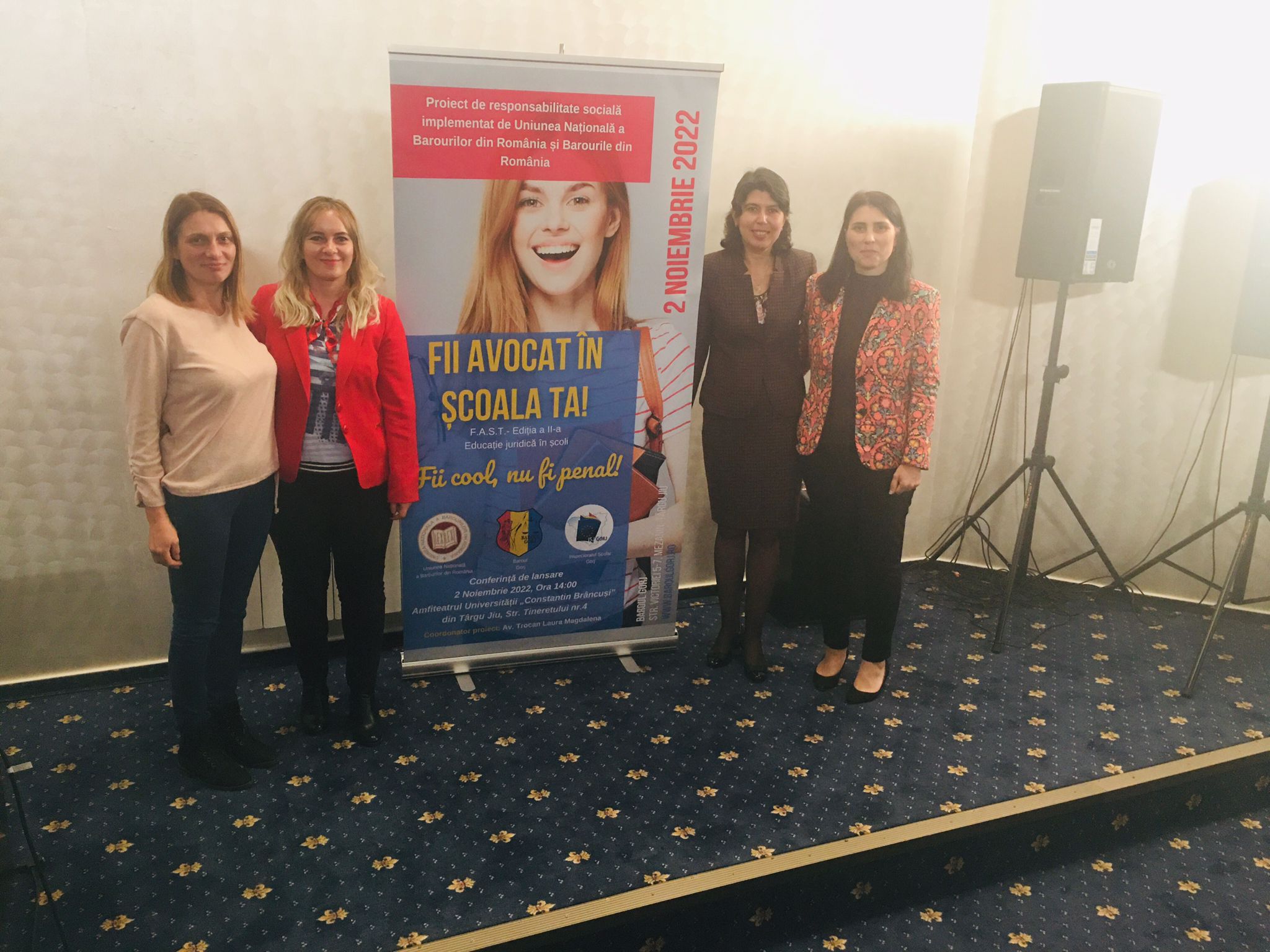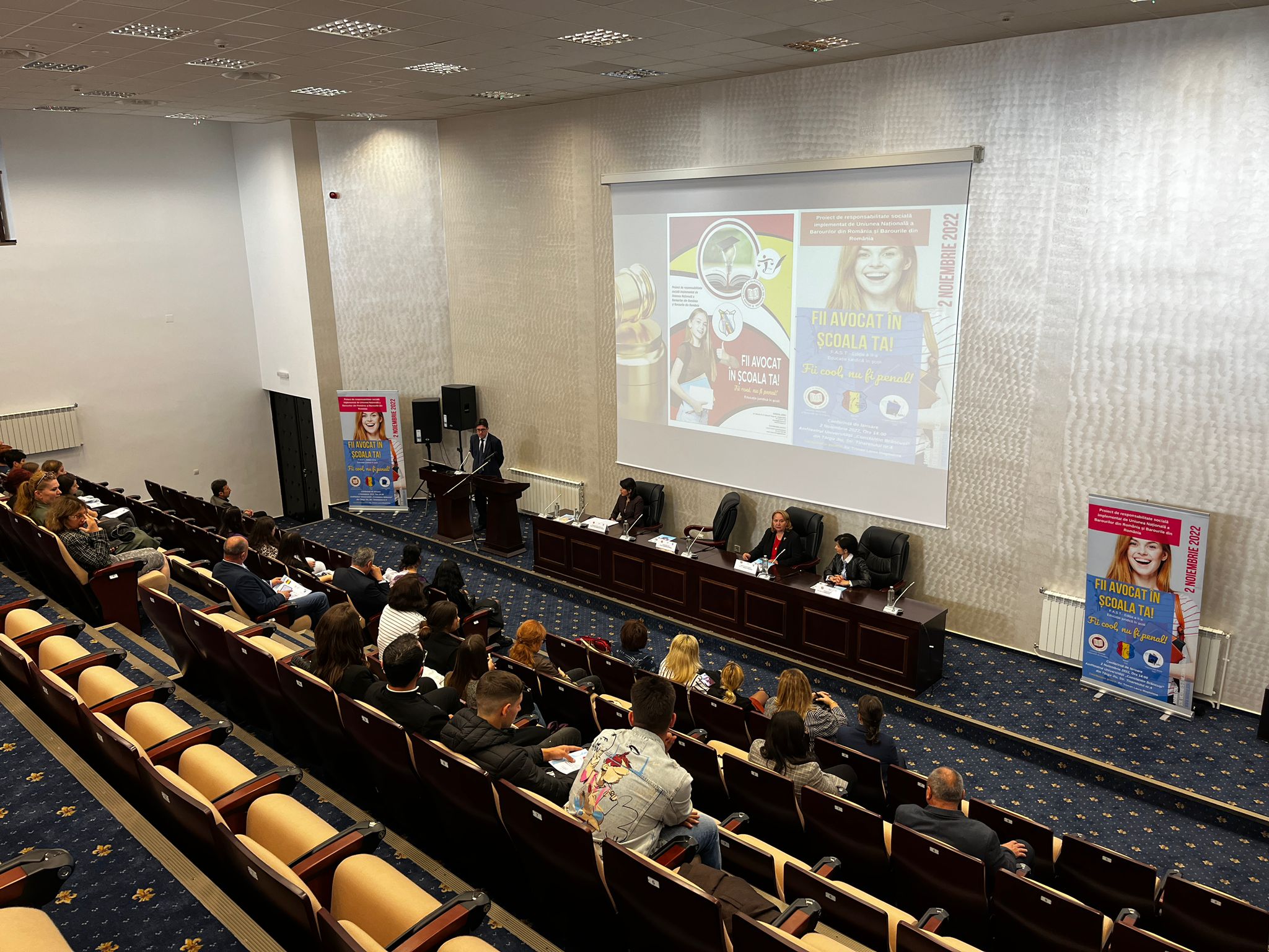 Acasă / Știri de actualitate UNBR  / Baroul Gorj, 2 noiembrie 2022, Conferința de lansare a celei de-a doua ediții a proiectului „Fii avocat în scoală ta!”