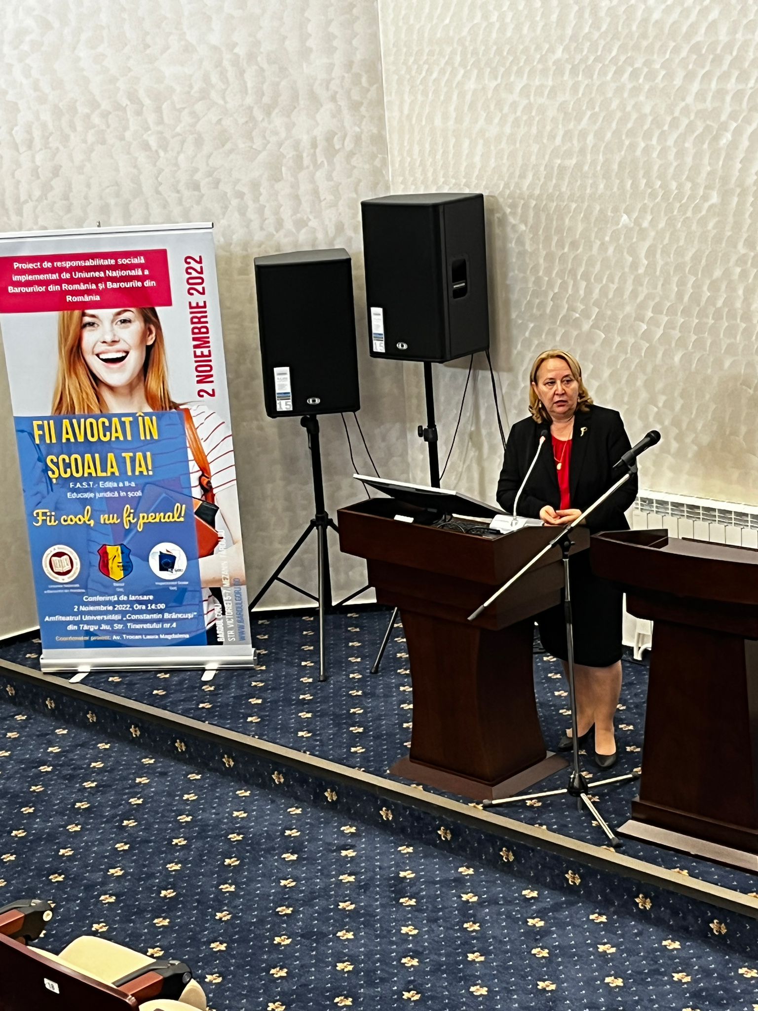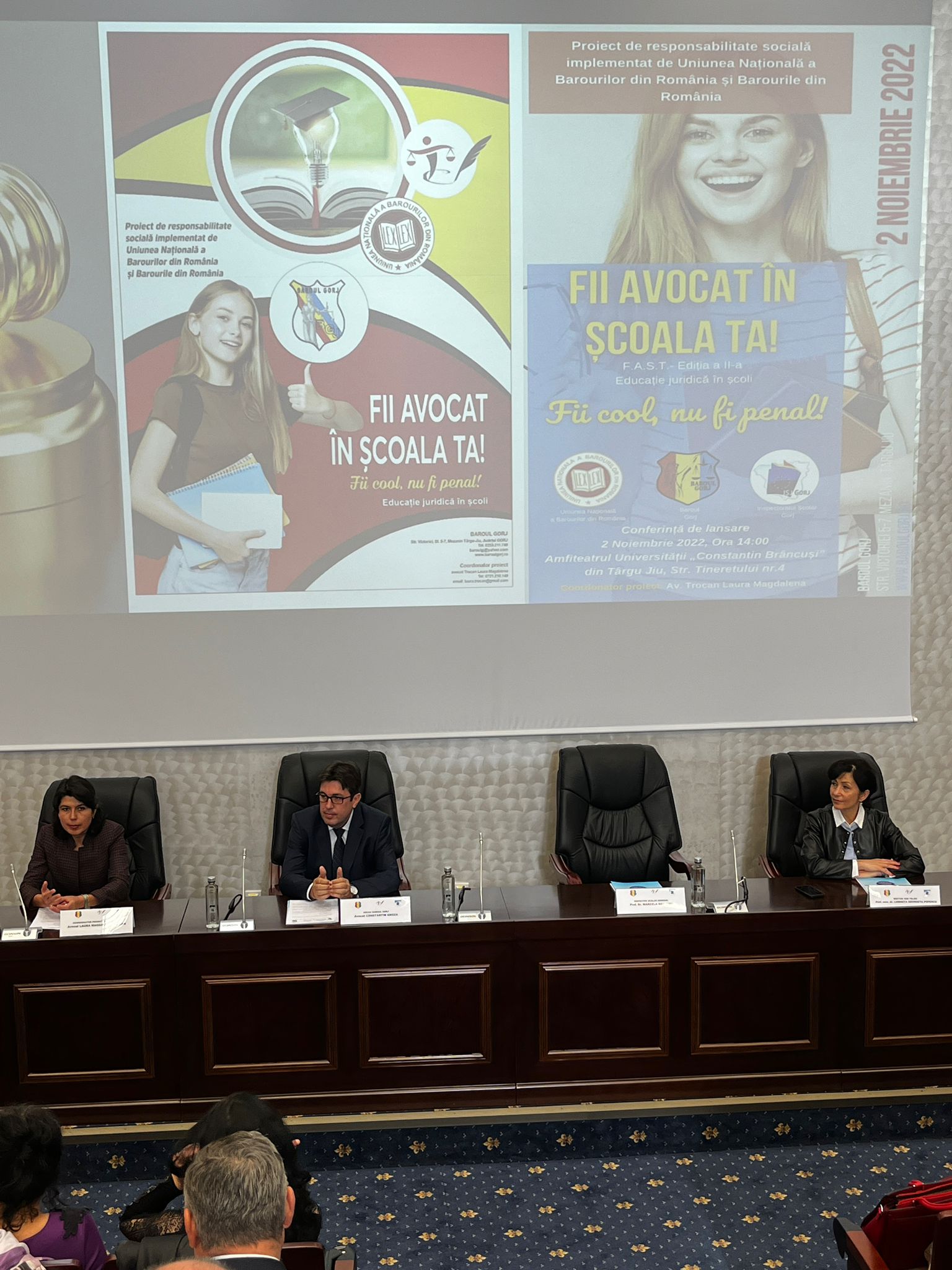 Baroul Gorj, 2 noiembrie 2022, Conferința de lansare a celei de-a doua ediții a proiectului „Fii avocat în scoală ta!”