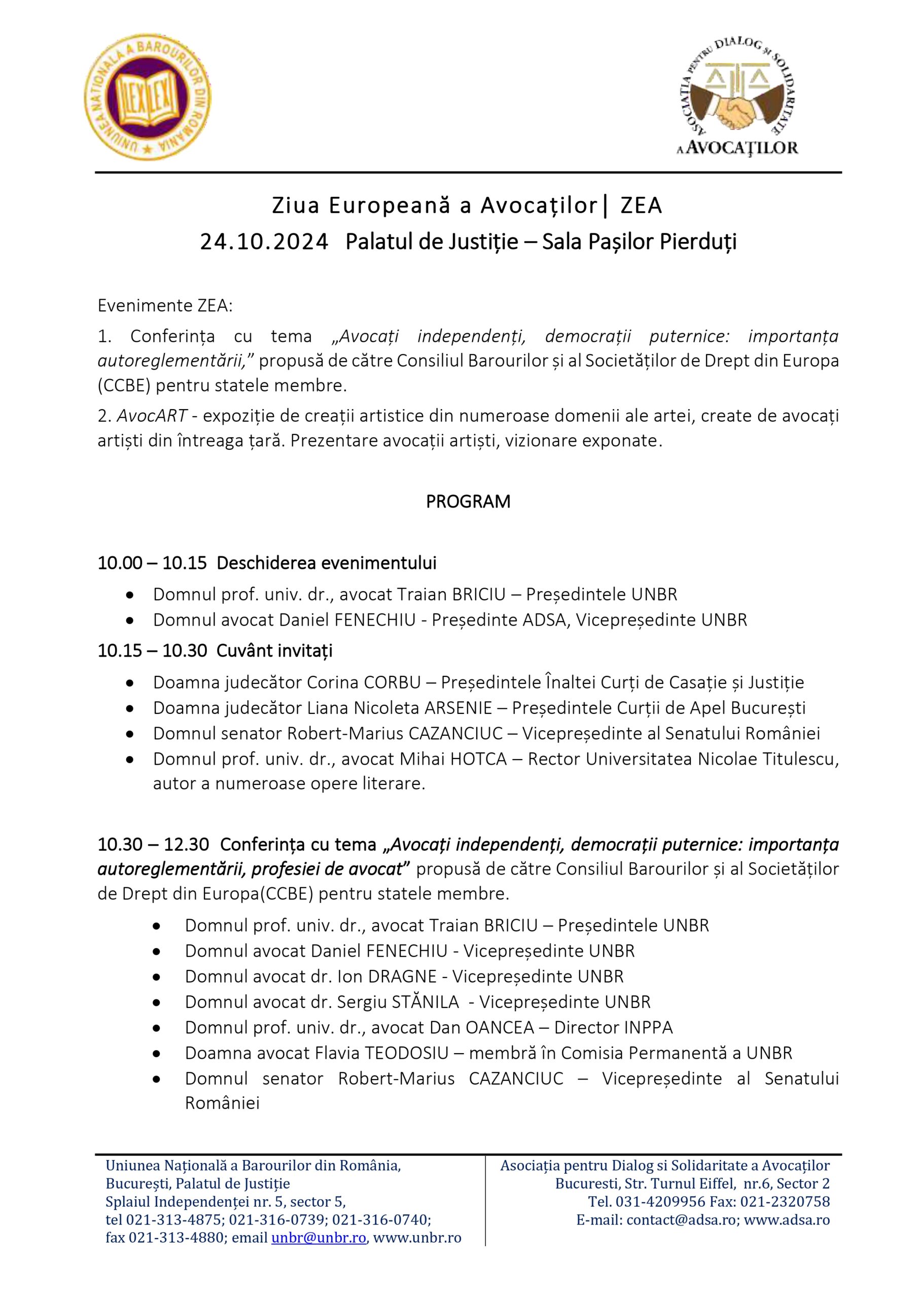 Mâine, 24 octombrie, la Palatul de Justiție, în Sala Pașilor Pierduți, ne întâlnim pentru a sărbători Ziua Europeană a Avocaților, afirmând legătura esențială dintre profesia noastră și democrație, precum și importanța autoreglementării.