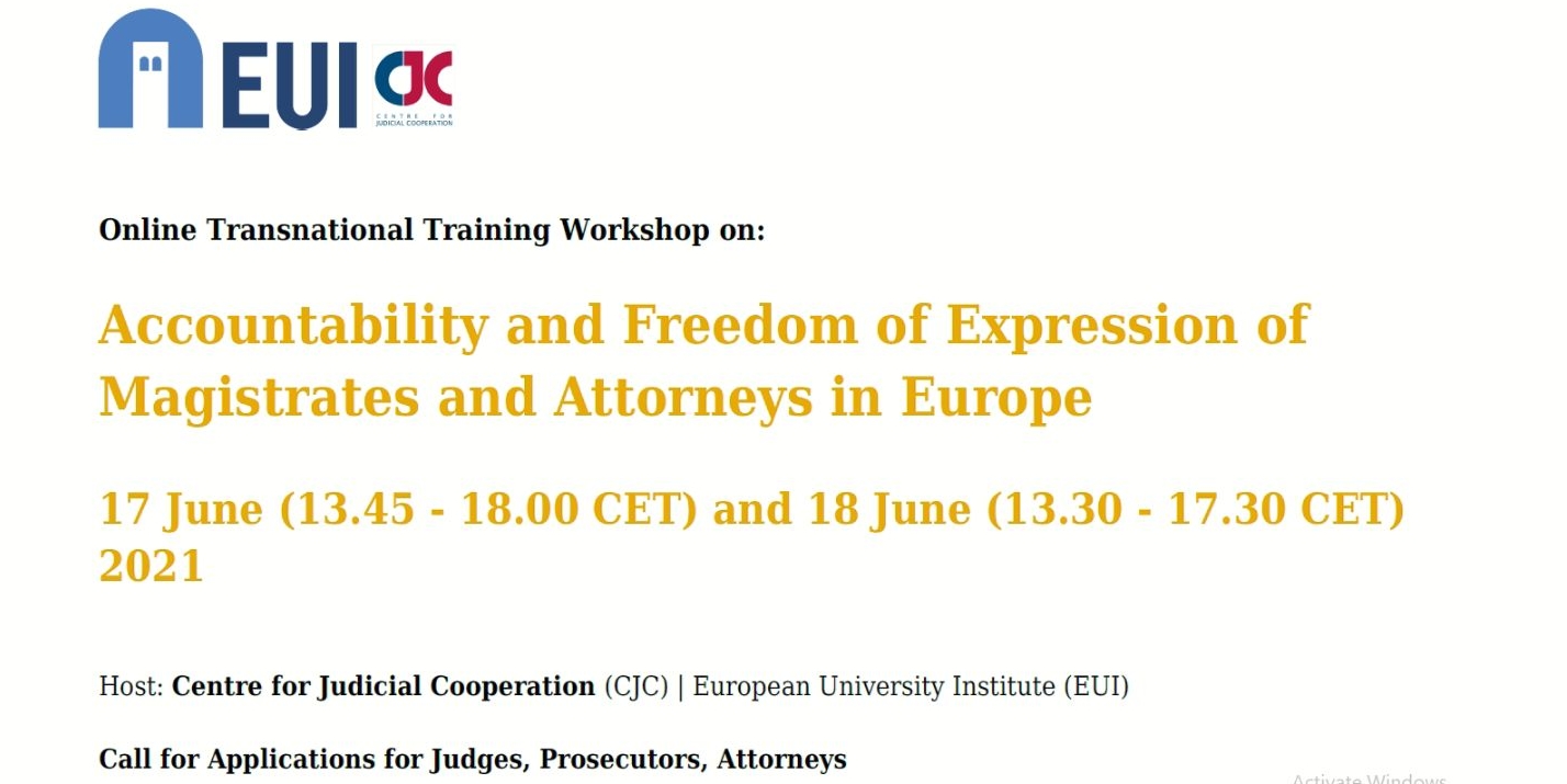 The deadline to apply for EUI Transnational Workshop on Accountability and Freedom of Expression of Magistrates and Attorneys in Europe has been extend to 17th of May, 2021